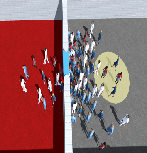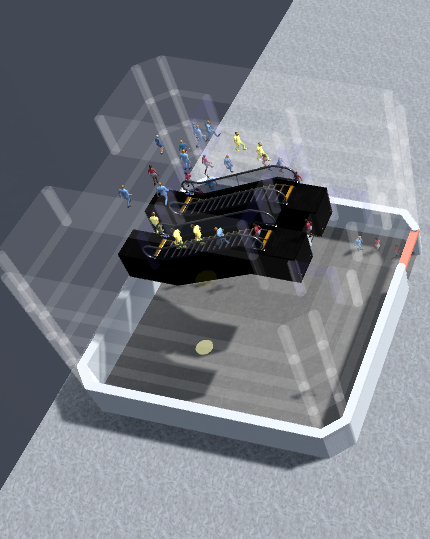 多样化行为模拟 软件内置了公共交通、区域级建模以及绕行逻辑(如购物/闲逛)等行为模型,以简单交互的方式通过AI技术,模拟正常和紧急情况下的人员移动。 | 火灾与烟雾扩散模拟集成 本软件集成了世界领先的火灾动力学模拟器(FDS),用于大涡模拟下的火灾与烟雾传播仿真。这使得用户能够直接量化设计变更对紧急场景的影响。 | 正常/紧急/购物行为模式 用户可即时切换行为模型,以模拟正常行走、购物/漫游行为及紧急移动。该功能支持广泛的规划、测试与训练应用。 |